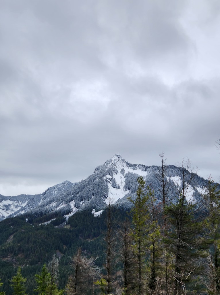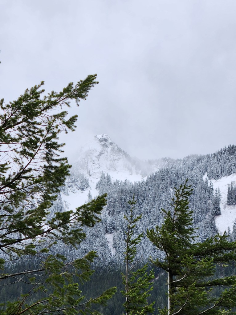 We walked through silent forest in Snoqualmie until we could see snow-covered mountains and my fingers were numb.